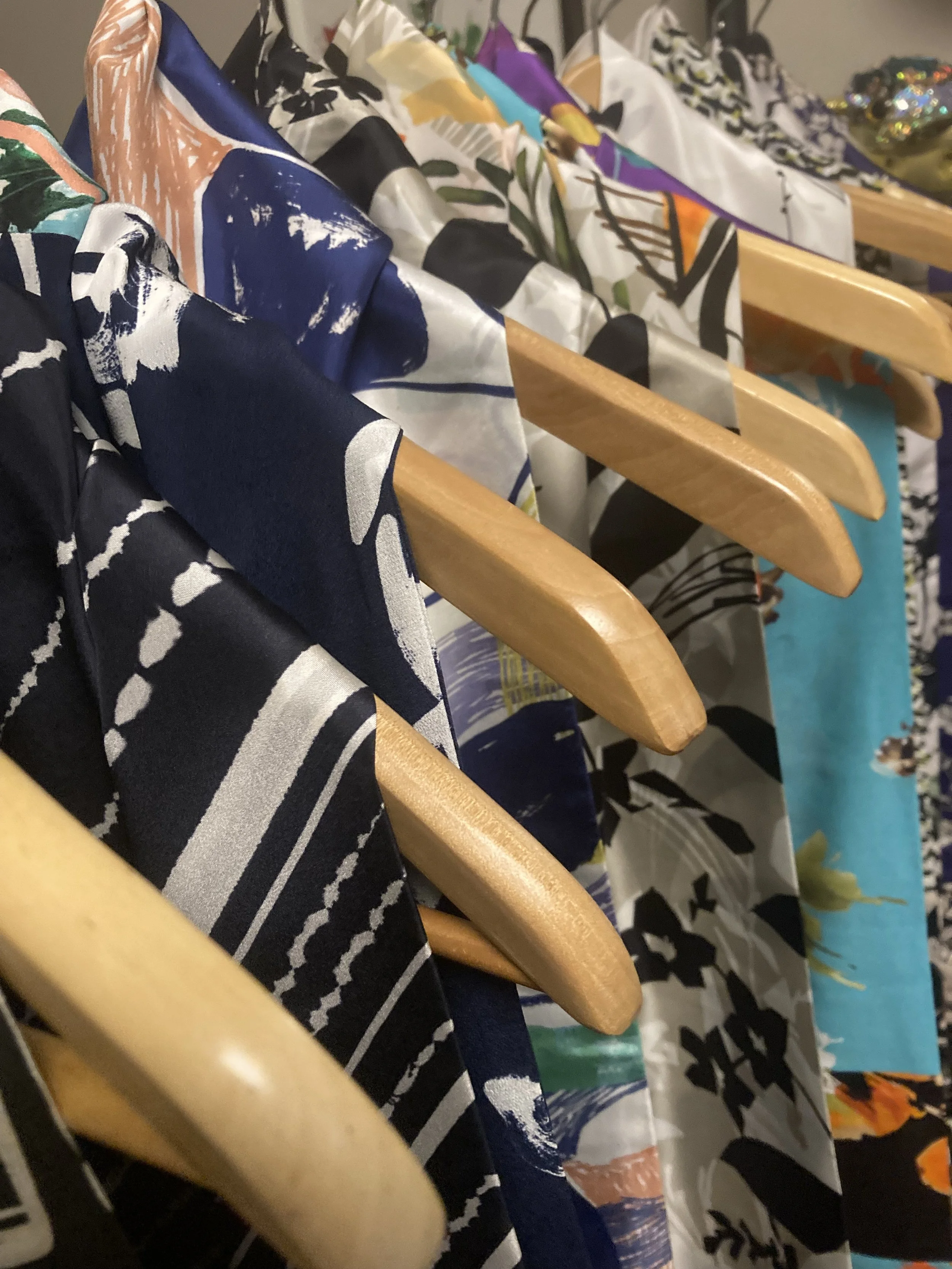 eclectically pieced together from my library of exclusive designs, each starts life with an original hand painted artwork on paper which is then digitally translated onto fabric, all of my scarves are made in the u.k.